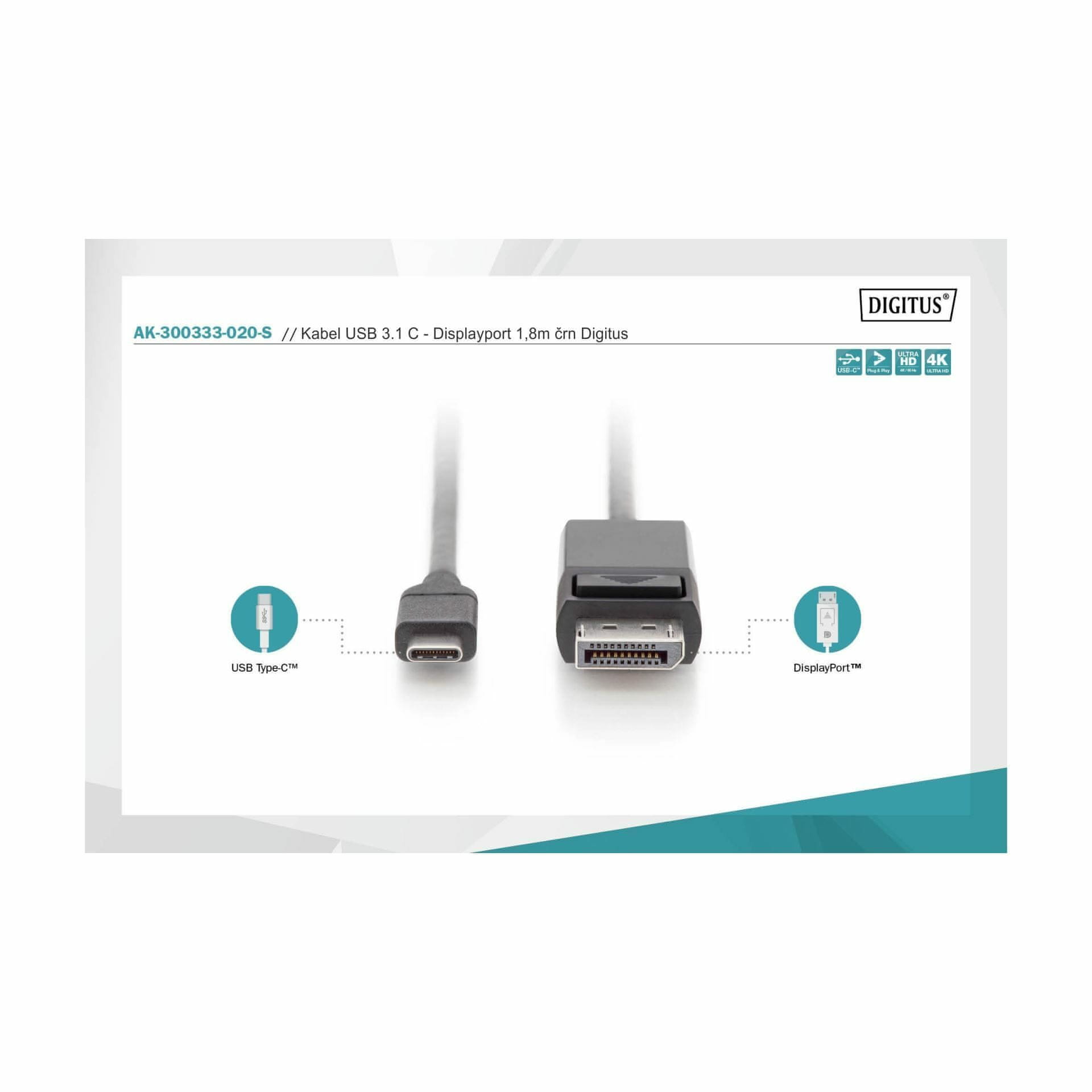 Digitus kabel USB TipC-DisplayPort 1,8m črn