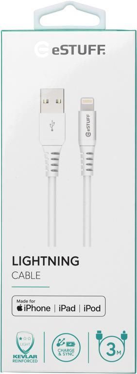 eSTUFF Lightning kabel MFI 3 m, bel bel, 100% reciklirana plastika, brez PVC