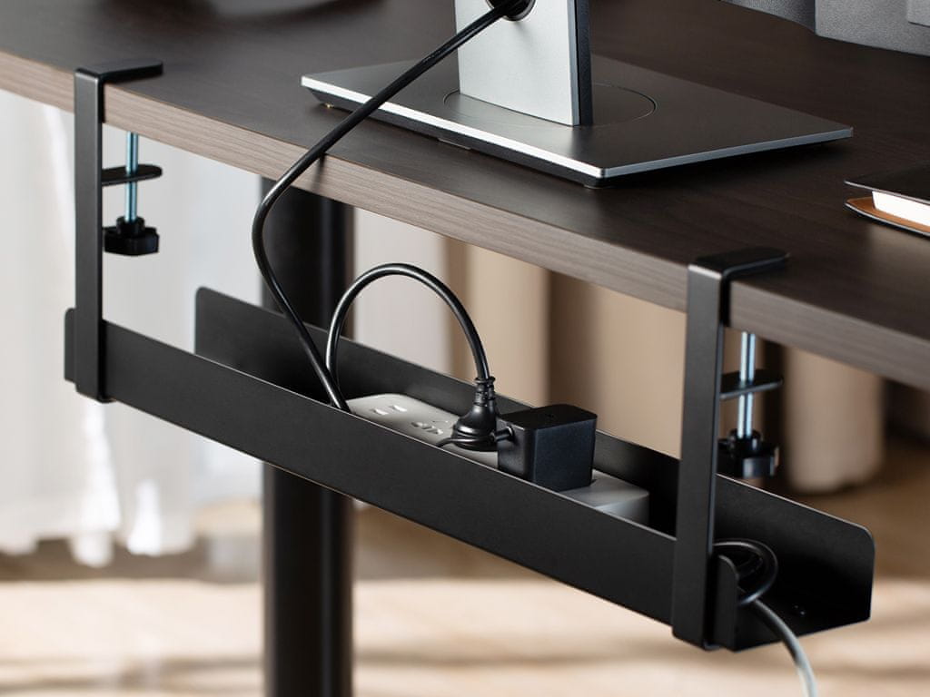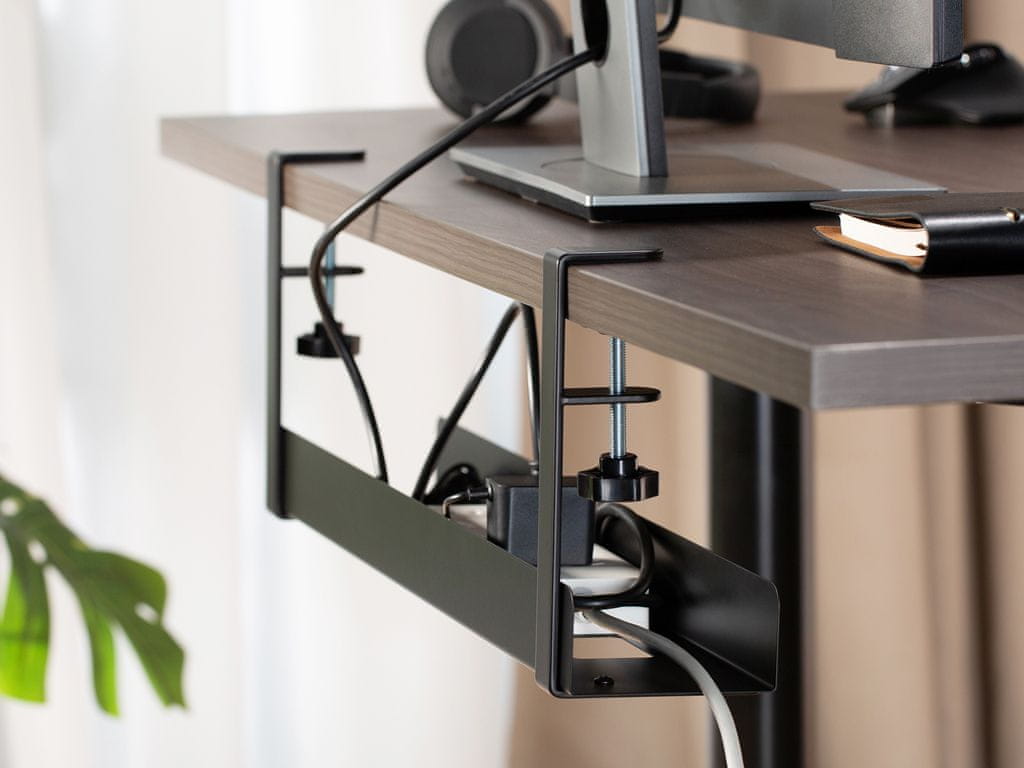 Predalnik za kable je praktična rešitev za urejeno delovno okolje. Zasnovan je za enostavno namestitev na mizo z dvema objemkama, kar omogoča hitro in stabilno pritrditev. Primeren je za mize debeline od 5 do 50 mm, kar zagotavlja široko uporabnost v različnih delovnih prostorih.