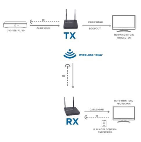 GBC Kon.El.Co. IRIDIUM 2 brezžični HDMI Extender Full HD (brezžični prenos HDMI signala do 100m)