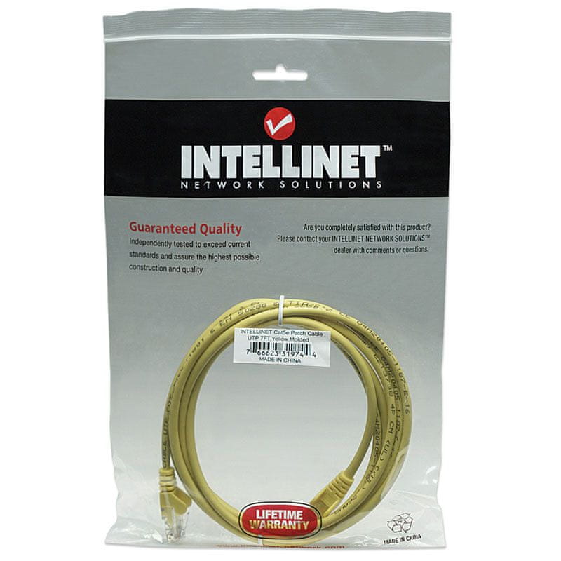 Omrežni kabel omogoča priročno in zanesljivo povezavo z ene omrežne naprave, kot je stikalo, model ali usmerjevalnik, na drugo ali na celotno infrastrukturo prek patch plošče, vtičnice keystone ali zidne vtič nice. Zasnovan je tako, da ustreza ustreznim standardom TIA/ EIA in primeren za uporabo v omrežjih 10/ 100/ 1000BASE-T. Intellinet Solutions CAT5e Patch kabel ponuja tudi močan PVC plašč in oblikovano olajšanje,  pri čemer pomaga zmanjšati poškodbe kabla in zagotovi popolno hitrost prenosa podatkov.