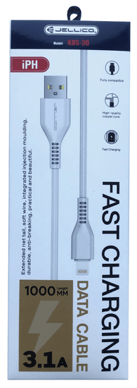 JELLICO Podatkovni kabel KDS-30 (Fast Charge) 3,1A vhod Lightning na USB-A 1m, bel, izjemno vzdržljiv, bakrena sredica, nizka upornost.