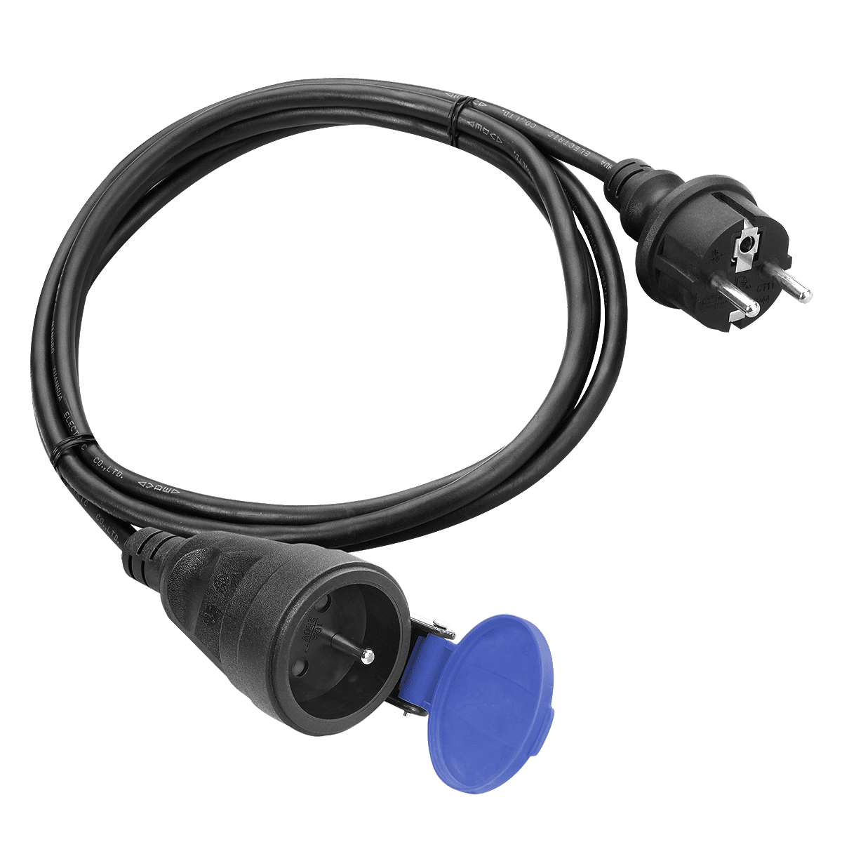 Podaljševalni kabel za delavnico s stopnjo zaščite IP44. Ima 1 vtičnico (2P+Z) s plastičnim pokrovom za zaščito notranjosti vtičnice pred vodo in prahom. Ima prevleke za tokovne poti. Gumijasti ozemljitveni kabel (H07RN-F 3×1,5 mm?), odporen na olje, je dolg 10 m.