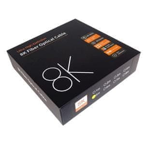 PremiumCord Ultra High Speed HDMI 2.1 optični kabel 8K@60Hz, pozlačen 5m Ultra High Speed HDMI 2.1 optični kabel 8K@60Hz ali 4K@120Hz se uporablja za povezavo dveh avdio/video naprav prek sodobnega vmesnika HDMI, kot sta predvajalnik HD-DVD/BluRay in LCD/Plazemski televizor.Kabel prenaša digitalni zvok in video ter podpira zaščito digitalnih vsebin HDCP.
