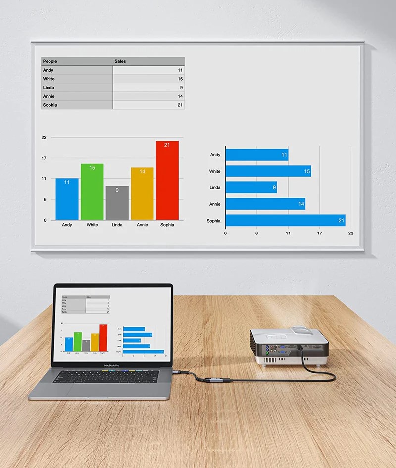 Sodoben JSAUX adapter iz USB tipa C v HDMI omogoča prenos zvočnih signalov brez motenj in videa v ločljivosti 4K iz prenosnikov, telefonov, tablic, opremljenih s priključkom USB tipa C, ali na televizorje, monitorje, projektorje in druge naprave, opremljene s priključkom HDMI