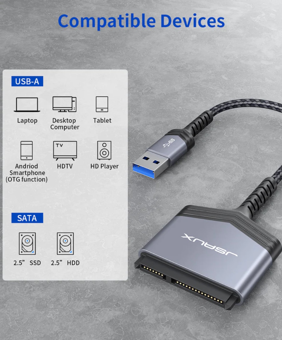 ⭐ JSAUX adapter vam omogoča, da na računalnik priključite 2,5-palčni trdi disk z vmesnikom SATA III prek vrat USB-A 3.0
