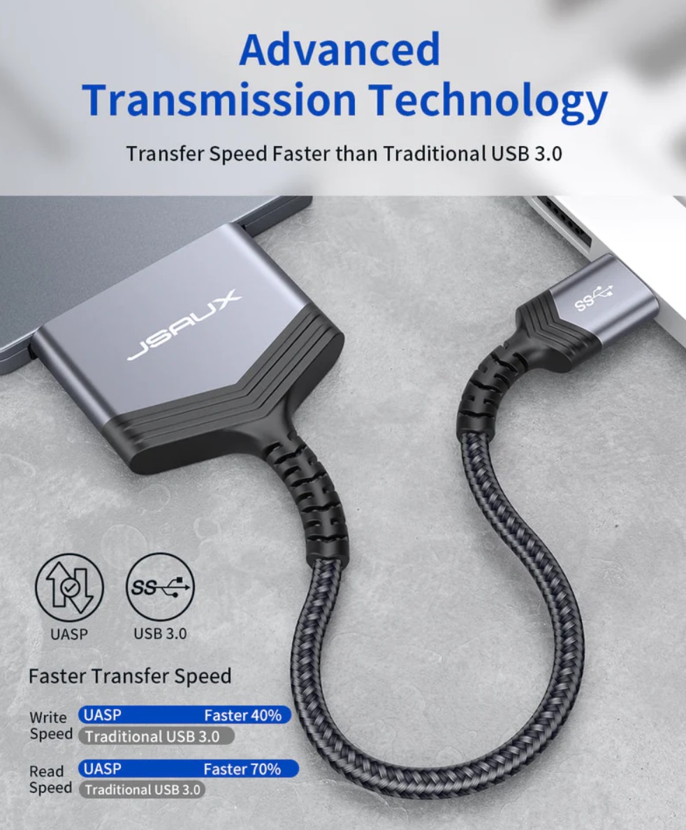 ⭐ JSAUX adapter podpira prenos podatkov s hitrostmi USB 3.0, kar zagotavlja hitro in učinkovito kopiranje, prenos in dostop do podatkov na disku