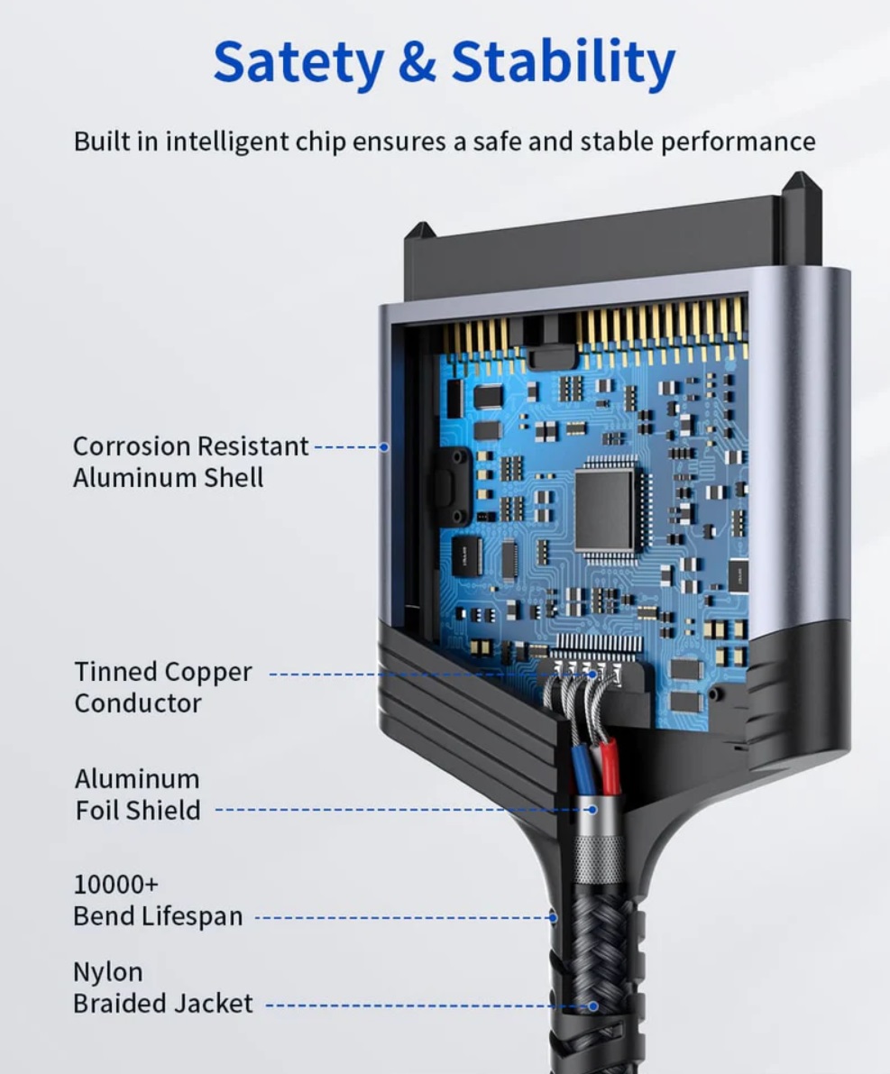 ⭐ Zaradi svoje Kompaktna velikost in prenosna zasnova, adapter je popoln spremljevalec za tiste, ki potujejo ali delajo na različnih krajih. Z lahkoto ga lahko vzamete s seboj in trdi disk priključite na kateri koli računalnik, da kadar koli dostopate do svojih podatkov