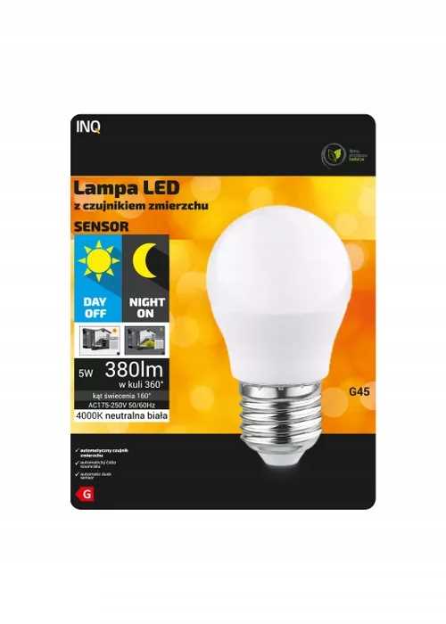 LED žarnica G45 E27 5W 4000K 380lm senzor mraka Celoten opis