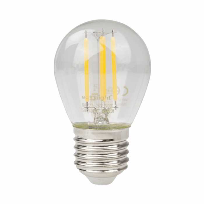 LED žarnica z nitko, krogla, G45 E27, 6W, 2700K Celoten opis