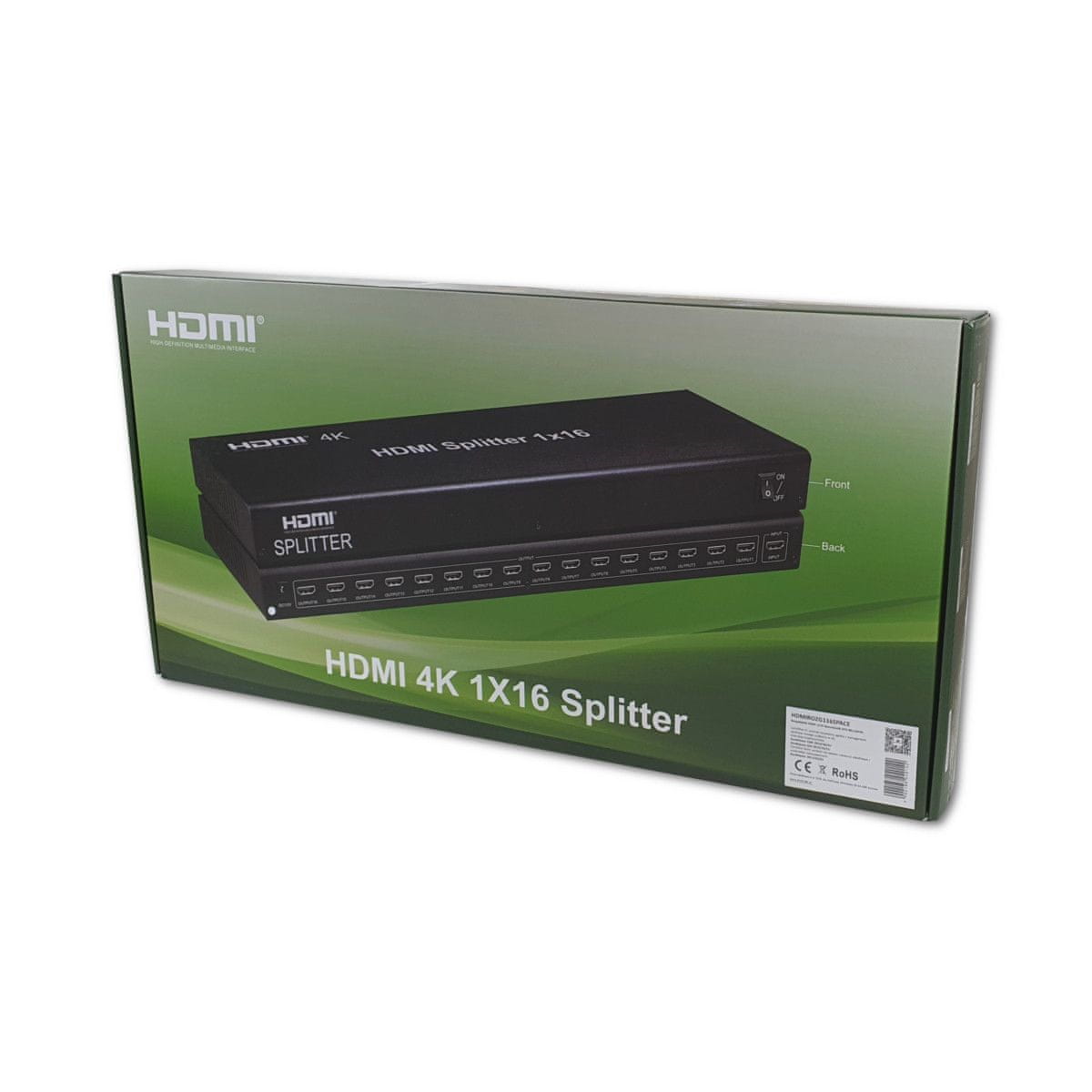 Razdelilnik HDMI 1×16 omogoča distribucijo signala HDMI iz enega vira do 16 sprejemnikov (televizorjev, monitorjev itd.) v zelo visoki kakovosti 4k in 3D.
