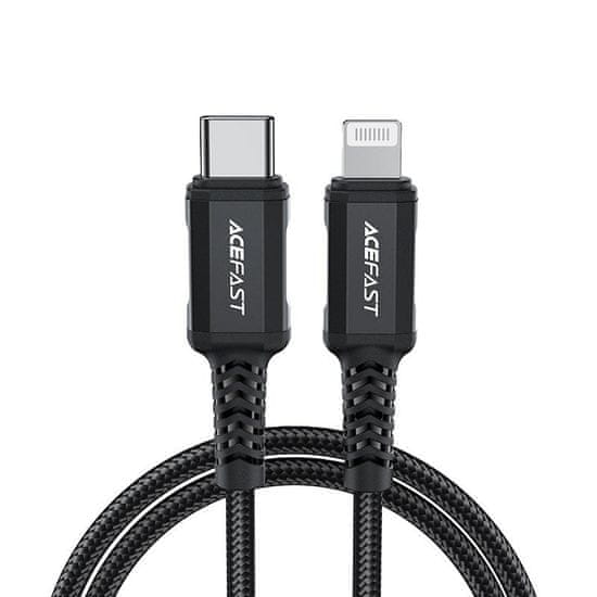 Kabel USB Tip C – Lightning za polnjenje in prenos podatkov znamke Acefast. Namenjen je napravam znamke Apple s priključkom Lightning. Dolg je 180 cm in je prilagojen za delo s tokom z obremenitvijo 30W in jakostjo 3A. Združljiv je s hitrim polnjenjem Power Delivery. Ima certifikat MFI (Made For iPhone), zaradi česar telefon ne bo prikazal sporočila o neoriginalnem dodatku. Kabel je po celotni dolžini oplaščen z najlonom. Vtiči imajo aluminijasto ohišje. Konci kabla imajo zaščito pred poškodbami na mestu najpogostejšega upogibanja.