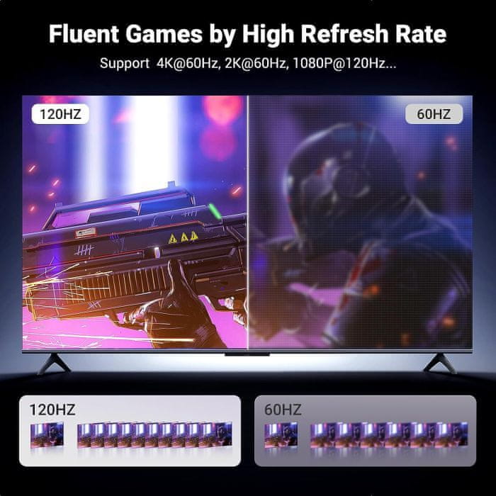 Televizorju ali monitorjem omogoča ustvarjanje gladkih in realističnih vizualnih podob, kar uporabnikom omogoča svilnato izkušnjo igranja iger in gledanja.