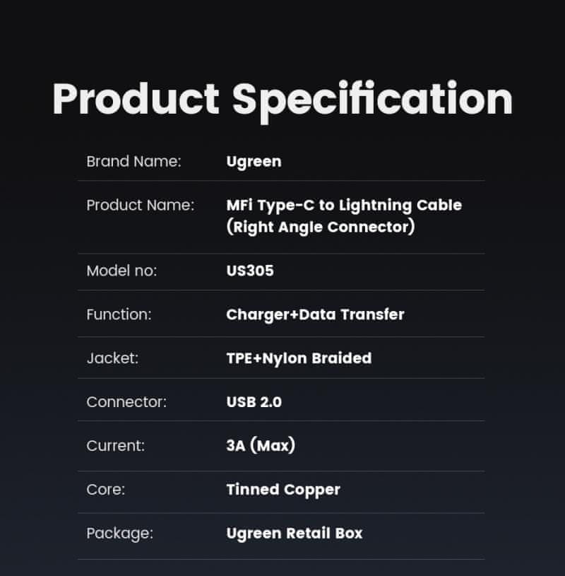 Ugreen MFI kotni kabel USB-C na Lightning 1,5mHitrost: do 480MbpsPolnjenje: do 18W