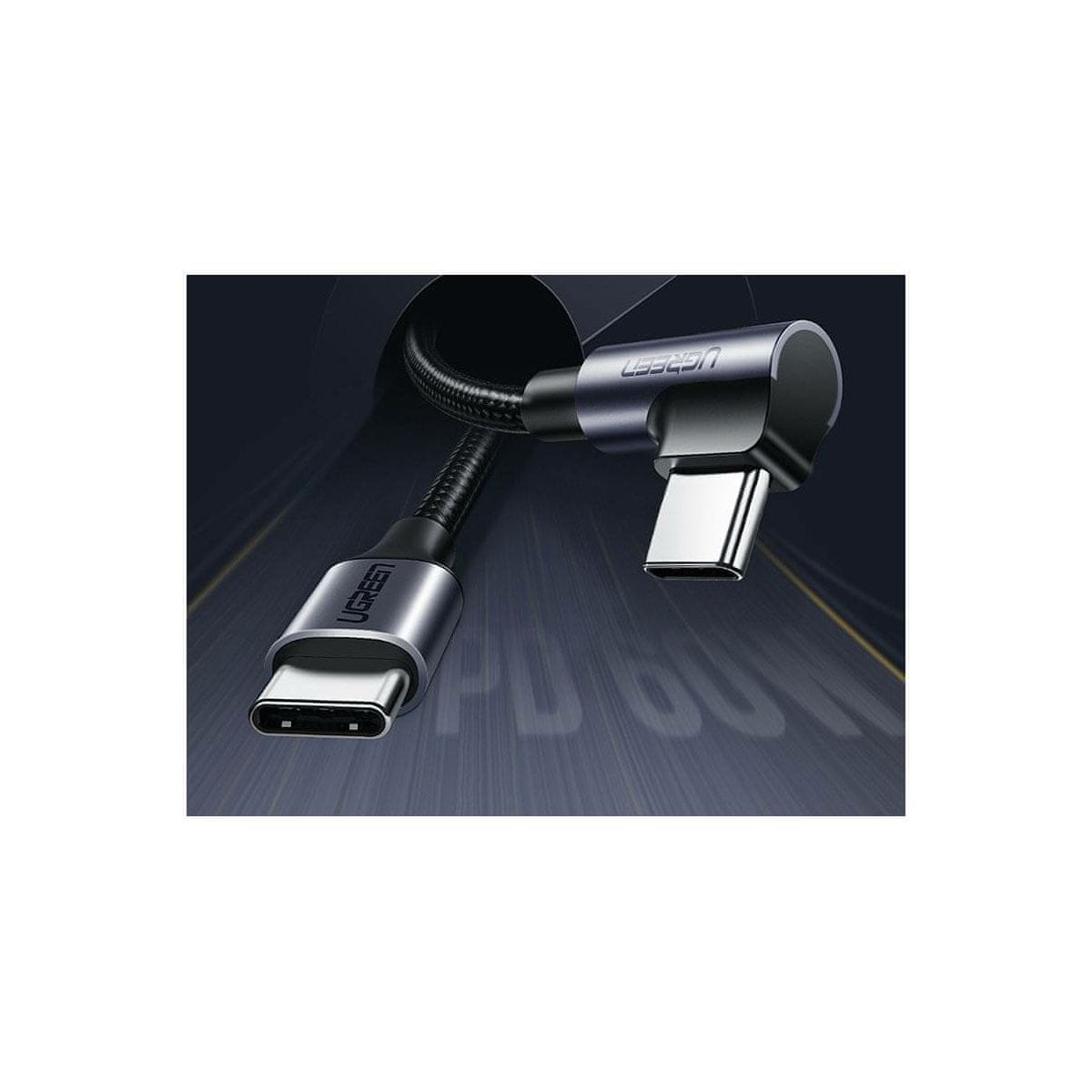 UGREEN US255 USB-C na USB-C kotni kabel, 3A, 60W, 2m (črn) UGREEN USB-C kabel s kotnim konektorjem na eni strani omogoča hitro in varno polnjenje mobilnih naprav, izjemno hiter prenos podatkov ter priročno uporabo.