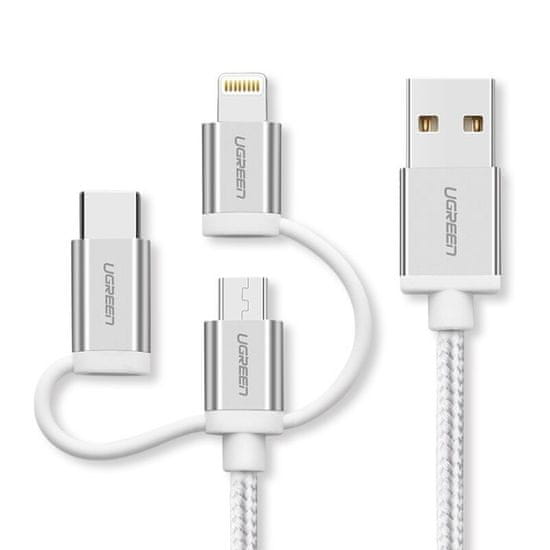 Ugreen USB 2.0 na Micro USB+Lightning+Type C (3 v 1) podatkovni kabel pleten 1,5m