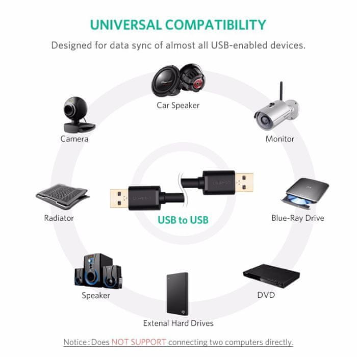 Ugreen USB-A 3.0 kabel (M na M) črn, hitrost prenosa do 5Gbps, kompatibilen z 2.0 in 1.1 napravami, brez potrebnih gonilnikov. Dolžina: 0.5m. Celoten opis