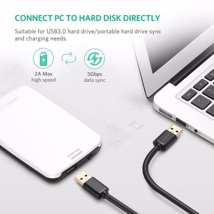 • Kabel Ugreen USB-A 3.0 vam omogoča povezavo med računalnikom in različnimi zunanjimi napravami.