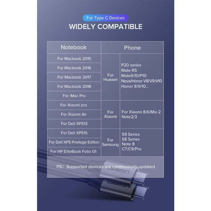 Kompatibilen je tudi za MacBook 12" 2017/2016/2015, MacBook Pro 13" 2019/2018/2017/2016, MacBook Air 13" 2019/2018, Huawei Matebook X Pro, Google Chromebook Pixel, Dell XPS 13, Lenovo Yoga 900 720, Razer Blade Stealth 2018, ASUS ZenBook 3, HP