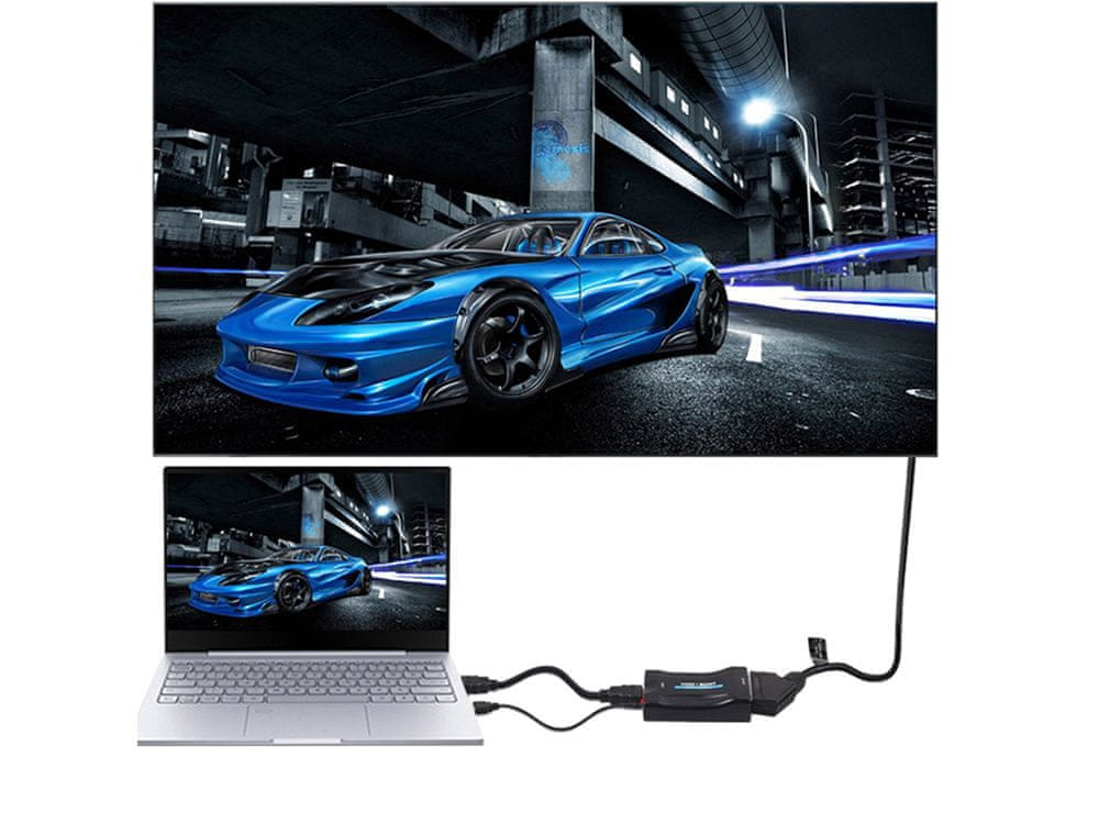 Adapter pretvornik SCART v HDMI AV euro FULL HD je popolnoma združljiv z vsemi napravami, ki imajo SCART izhod, kot so računalniki, prenosni računalniki, igralne konzole, DVD predvajalniki, digitalni sprejemniki in še več. Enostavno ga priključite na vašo napravo preko HDMI kabla in nato povežite adapter s scart AV euro priključkom na vašem televizorju ali drugi napravi.