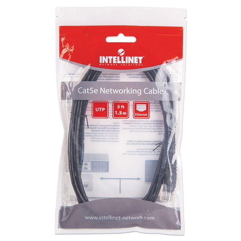Omrežni kabel omogoča priročno in zanesljivo povezavo z ene omrežne naprave, kot je stikalo, model ali usmerjevalnik, na drugo ali na celotno infrastrukturo prek patch plošče, vtičnice keystone ali zidne vtič nice. Zasnovan je tako, da ustreza ustreznim standardom TIA/ EIA in primeren za uporabo v omrežjih 10/ 100/ 1000BASE-T. Intellinet Solutions CAT5e Patch kabel ponuja tudi močan PVC plašč in oblikovano olajšanje,  pri čemer pomaga zmanjšati poškodbe kabla in zagotovi popolno hitrost prenosa podatkov.