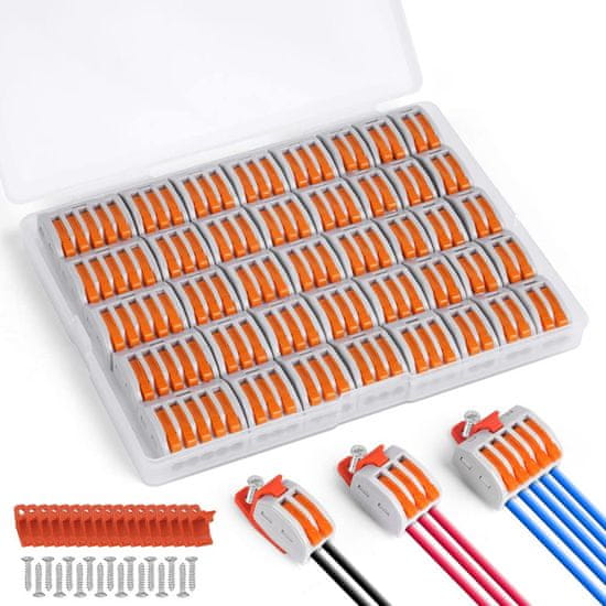 Nikcorp Komplet 80 hitrih sponk za kabelske konektorje 2/3/5 vrat z nosilci in vijaki za žice 0,08-4,0 mm² za večkratno uporabo
