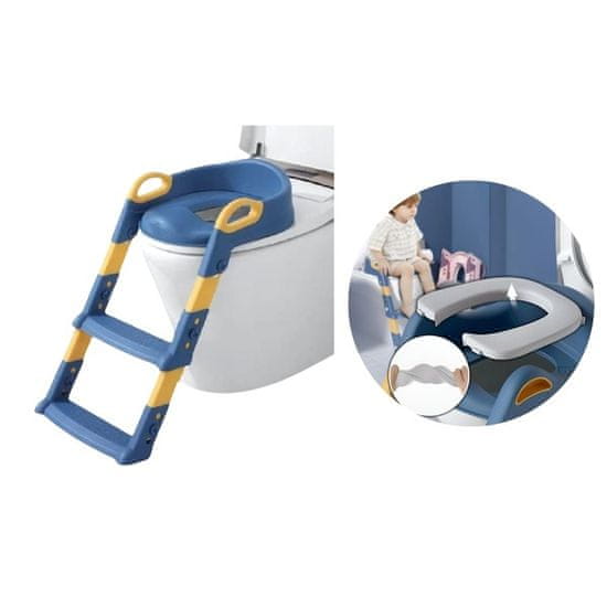 JOJOY® Otroška straniščna školjka s stopnicami, Ergonomski sedež za stranišče, Pilagodljiva lestev za stranišče KIDDISTEP modra + Udobna podloga KIDDIPAD | KIDISTEPADBLUE