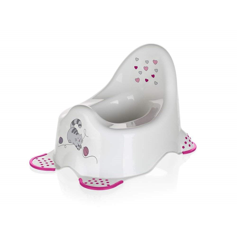 Nočnik CAT zaradi svoje gladke površine omogoča enostavno čiščenje. Lonček je maksimalno stabilen zaradi širokih nedrsečih nogic. Anatomska oblika in visoko naslonjalo za hrbet zagotavljata udobno sedenje. Dvignjen osrednji del preprečuje, da bi se vsebina nočnika razlila.