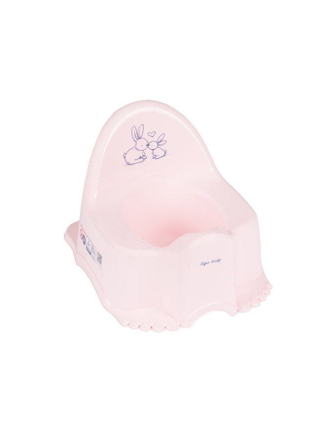 Otroški lonček s sliko zajčkov v čudovitih pastelnih barvah. Je lahek in kompakten, zaradi svoje oblike, visokega naslonjala in širokega sedeža pa otrokom zagotavlja udobje. Lonček igra melodijo, ko urinirate. Dimenzije dxšxv pribl. 38×23×25 cm.