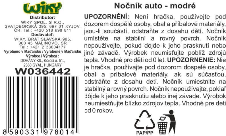 Avto s posodo. Modra barva. Dimenzije 35×24×20 cm. Največja nosilnost 20 kg.