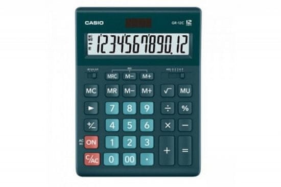 Casio Uradni kalkulator CASIO GR-12C-DG z 12-mestnim zaslonom v zeleni barvi, primeren za pisarno, napajanje na baterije in sončno energijo.