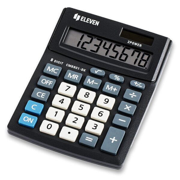 Kompaktni namizni kalkulator z osnovnimi funkcijami in rahlo nagnjenim zaslonom. Celoten opis