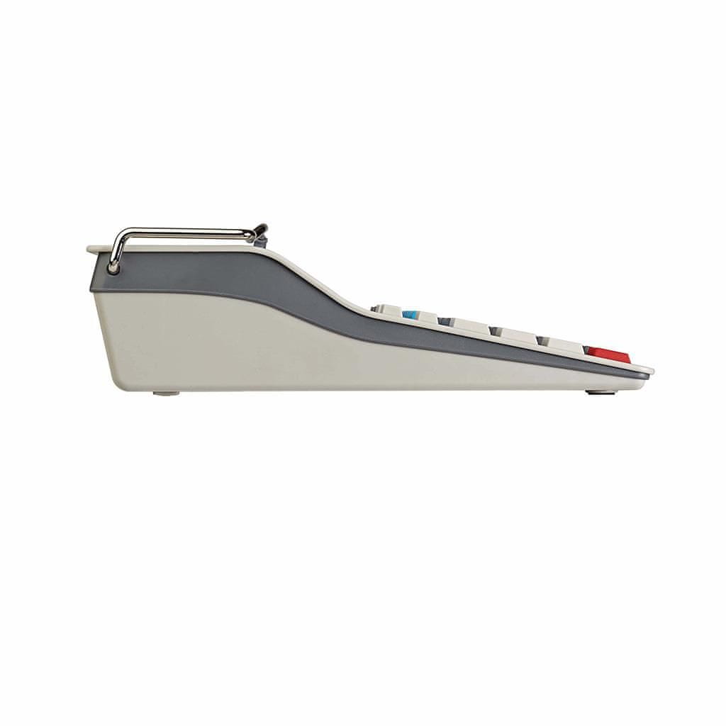 Univerzalni model moderne oblike z vsemi pomembnimi funkcijami. Napajanje na elektriko ali baterijo. Tipkovnica enaka kot na računalniku. Dvobarvni tisk. Velik 12-mestni enovrstični LCD zaslon. Tipke za vklop in za računanje davka v drugih barvah. Preračunavanje valut z programabilnim menjalnim. Celoten opis