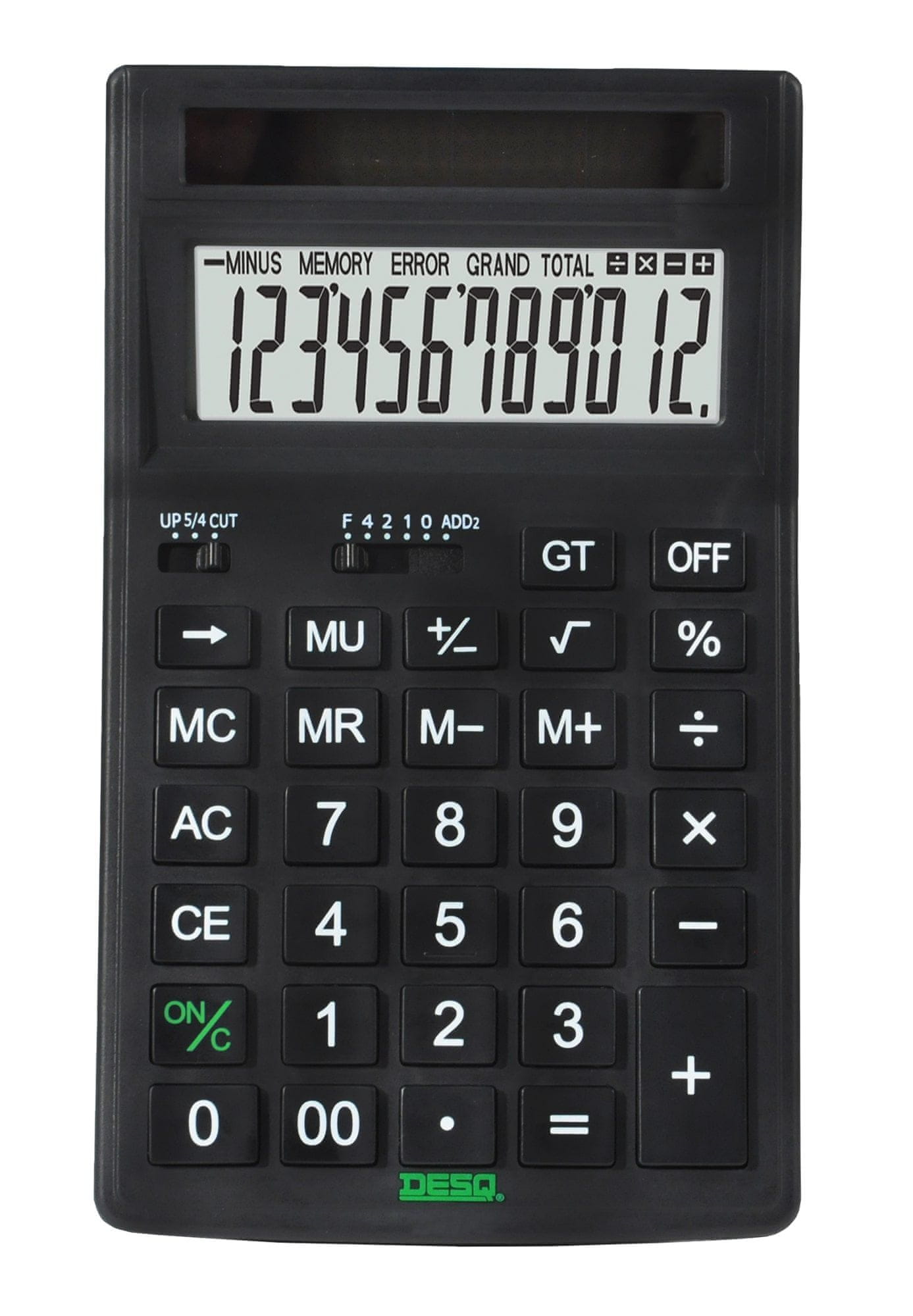 • Namizni solarni kalkulator – 12-mestni LCD zaslon – gumbi MU, GT, Backspace, dvojna ničla, (+/-) – nastavitve zaokroževanja in decimalnih vrednosti – gumbi za izračun …