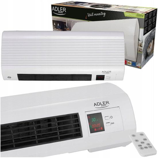 Adler 2000W keramična stenska električna grelna zračna zavesa LCD + daljinec