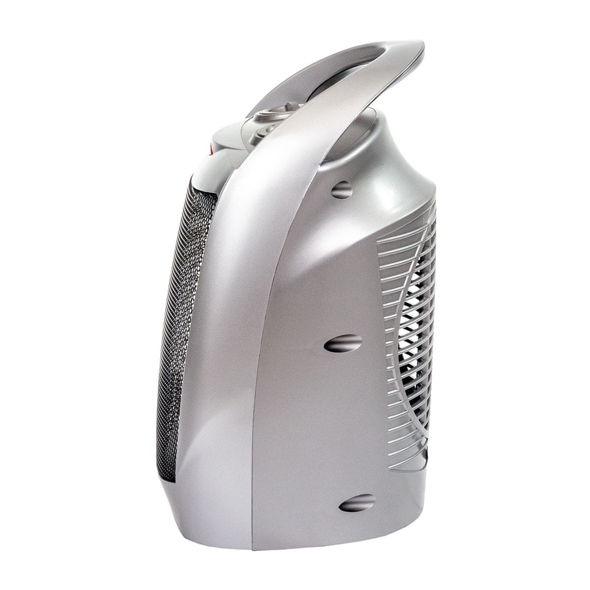 Električni grelec NB-301 1500 W je varen notranji grelec, lahko pa ga uporabljate tudi za krajše bivanje zunaj med sedenjem na terasi ali v šotoru. Ima eleganten dizajn, majhne dimenzije (ŠxGxV): 20×14,5×27 cm in udoben ročaj, ki omogoča takojšen prenos in je zelo enostaven za uporabo. Dvostopenjska regulacija s stikalom omogoča nadzor moči (750 W / 1500 W), ki jo lahko prilagodite svojim potrebam. Ročni termostat električnega grelnika pomaga doseči želeno temperaturo. Prednost je zaščita pred pregrevanjem, izvorna dioda za prikaz načina delovanja in stikalo v primeru padca, ki zmanjšajo verjetnost požara. Grelnik ima vgrajeno ohišje iz PTC keramike, ki v kratkem času poveča učinkovitost ogrevanja. Grelec je naravnan na srebrno barvo in zaradi svoje velikosti kljub odličnim grelnim zmogljivostim ostaja neopazen.