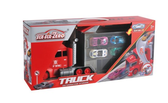 Sestavite svoje dirkališče, organizirajte dirke in postanite prvak! Ta akcijski komplet vključuje tovornjak in 4 avtomobile za veliko hitre zabave. Pritisnite na gumb in izrinite avto naravnost na dirko!