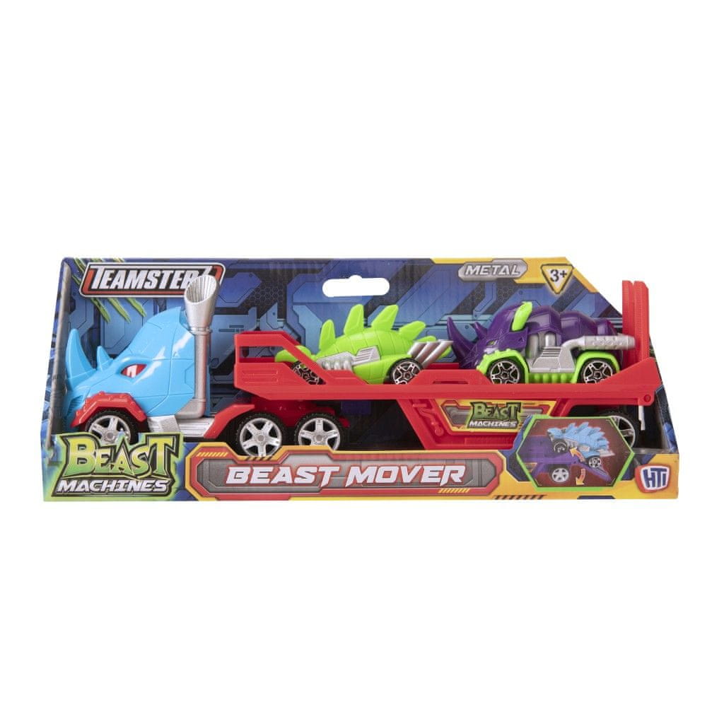 Vstopite v svet dinozavrov in pustolovščin s tem traktorjem Teamsterz, ki ima edinstven dizajn dinozavrove glave! Ta traktor ima zadnjo nakladalno rampo, ki omogoča enostavno natovarjanje in raztovarjanje avtomobilov. V paketu sta priložena dva avtomobila z enakim dizajnom dinozavrov, ki odlično dopolnjujeta celoten videz in zabavo.