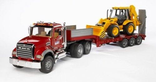 Bruder Mack Granite vlačilec je izdelan iz kakovostne in nezlomljive plastike. Tovornjak je mogoče krmiliti skozi odprtino v strehi prek nastavka za volan.