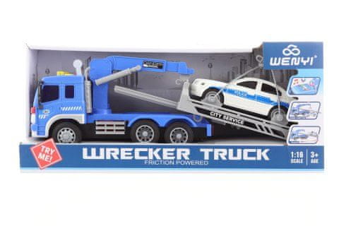 Vlečno vozilo poganjajo baterije 3×AG13, ki so priložene v paketu. Dimenzije paketa so približno 42×18×12 cm. Velikost vlečnega vozila je približno 38 cm, velikost avtomobila približno 16 cm. Starost 3+