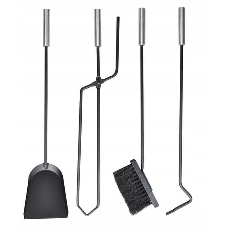 Ta pametni komplet vsebuje 4 različna orodja za vaš kamin in pripadajoče držalo za različne pripomočke. Orodja so moderno oblikovana in izdelana iz robustnega jekla črne barve.