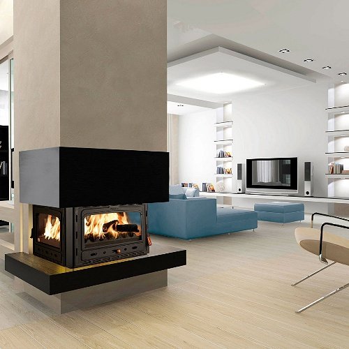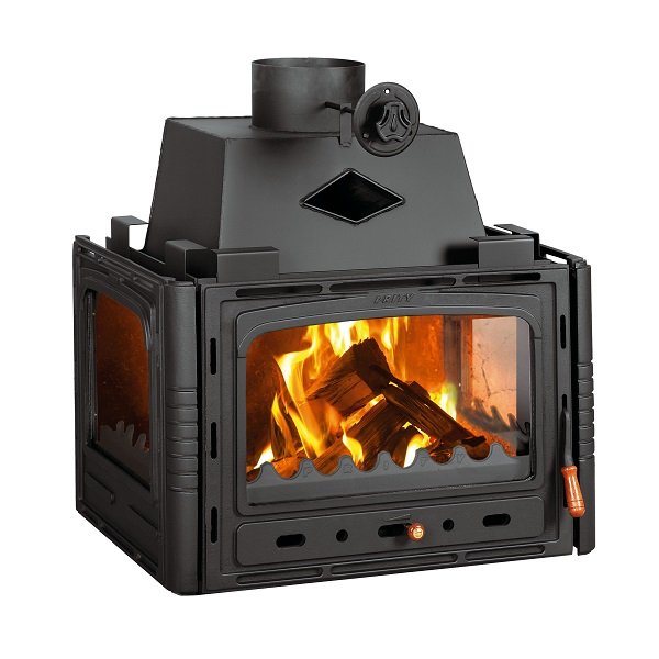 Vgradni kamin z močjo 16kW, kar zadostuje za ogrevanje okoli 150m2 velikega prostora z normalno izolacijo in tesnjenjem oken. Kamin je iz kotlovske pločevine debeline od 5–8 mm, notranjost je obložena s šamotno opeko, litoželezna (gus) rešetka. Okvir in vrata kamina so litoželezna (gus) in zelo masivna. Rustikalen kamin primeren za vse prostore, pričara romantično vzdušje in prijetno ogreje veliko površino. Steklo ima na treh straneh, tako da omogoča vogalno vgradnjo.