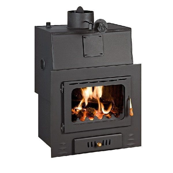 Vgradni kamin s priklopom na centralno ogrevanje. Možnost priklopa do 11 radiatorjev. Sam kamin odda v prostor v katerem je vgrajen moč 5kW, kar zadostuje za ogrevanje okoli 40m2 velikega prostora z normalno izolacijo in tesnjenjem oken. Kamin je v celoti iz kotlovske pločevine debeline od 5–8 mm, notranjost je obložena s šamotno opeko, litoželezna (gus) rešetka. Kamin primeren za vse prostore, pričara romantično vzdušje in prijetno ogreje hkrati več prostorov.