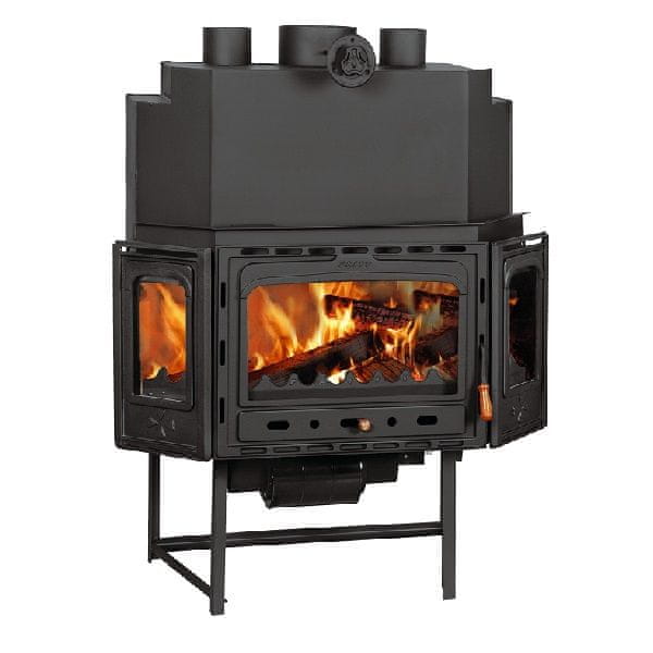 Sam kamin pa odda v prostor v katerem je vgrajen 8 kW moči, kar omogoča ogrevanje prostora velikosti 75 m2 ob normalnem tesnjenju oken in izolaciji. Kamin je izdelan iz visokokakovostne kotlovske pločevine debeline 5 mm, notranjost je obložena s šamotno opeko in ima litoželezno rešetko. Okvir in zunanji del kamina je litoželezen, izredno masiven in rustikalen.