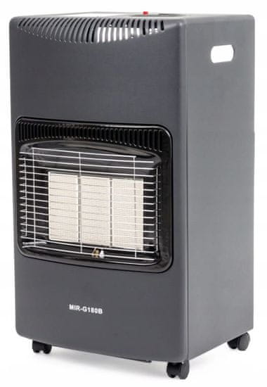 Plinski grelec z močjo 4,2 kW, analizatorjem dimnih plinov in stikalom proti nagibanju. Sodoben plinski grelec MIR-G180B je učinkovita rešitev za ogrevanje različnih prostorov. Ponuja tri stopnje moči: 1,4 kW, 2,8 kW in 4,2 kW, kar vam omogoča, da temperaturo prilagodite svojim individualnim potrebam. Naprava je opremljena s termostatom, ki povečuje udobje vsakodnevne uporabe. Grelec lahko učinkovito ogreva površine do 60 m² in ga napaja standardna plinska jeklenka s propanom in butanom. Naprava ima tri keramične grelne plošče, ki zagotavljajo visoko učinkovitost. Zagon grelca je preprost zaradi piezoelektričnega vžiga. Komplet vključuje tudi cev in regulator, potreben za priključitev jeklenke. Poleg tega ima grelec transportna kolesa in ročaje, zaradi česar ga je enostavno premikati kamor koli. Trdna kovinska konstrukcija je estetsko privlačna in se dopolnjuje z različnimi notranjimi dizajni. Prednosti: ⚪️ Brezstopenjski nadzor moči – 3 stopnje moči (1,4 kW, 2,8 kW, 4,2 kW) vam omogočajo, da ogrevanje prilagodite svojim potrebam. ⚪️ Učinkovitost ogrevanja – učinkovito ogreva površine do 60 m². ⚪️ Enostavna uporaba – hiter zagon zaradi piezo vžiga. ⚪️ Mobilnost – opremljena s transportnimi kolesi in ročaji za enostavno prenašanje. ⚪️ Stabilna konstrukcija – iz kovine za vzdržljivost in estetiko. ⚪️ Sodoben dizajn – ustreza različnim notranjim dizajnom. Parametri: ⚪️ Model: MIR-G180B ⚪️ Dimenzije: 73 cm (višina) x 43 cm (širina) x 39 cm (globina) ⚪️ Moč: 4,2 kW ⚪️ Vrsta izdelka: Plinska pečica ⚪️ Predvidena uporaba: Stenska ⚪️ Material: Jeklo ⚪️ Najmanjša poraba plina: 110 g/h ⚪️ Največja poraba plina: 305 g/h ⚪️ Čas delovanja: Več kot 45 ur ⚪️ Vrsta ogrevanja: Modri plamen (plin) ⚪️ Barva: Črna ⚪️ Zaključek: Prašno barvanje ⚪️ Nastavitev: Ročno, 3-pozicijsko ⚪️ Vžig: Piezoelektrični ⚪️ Zaščita: Brez ⚪️ Površina za ogrevanje: 40–80 m² ⚪️ Priložena dodatna oprema: Da