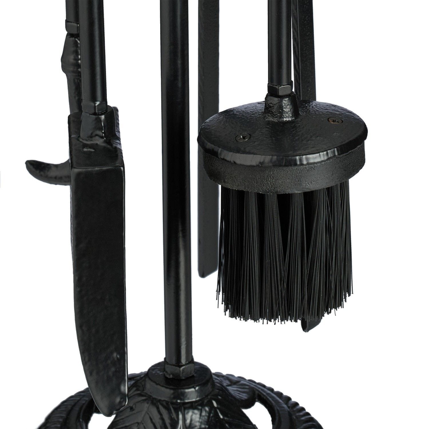 Izkusite toplino in udobje prasketajočega odprtega ognja v vašem domu, kot nalašč za hladne in deževne dni. Z našim kaminskim kompletom poskrbite, da ogenj gori dolgo in da bo kamin vedno čist. Z obešanjem kompleta na priloženo stojalo imate pribor za peč vedno pri roki in lepo pospravljen. Naši dodatki za peč so izdelani iz robustnega litega železa, kar zagotavlja izjemno stabilnost in vzdržljivost. Zaradi starinskega vintage dizajna je ta komplet okrasna paša za oči, ki izboljša estetiko vašega doma.