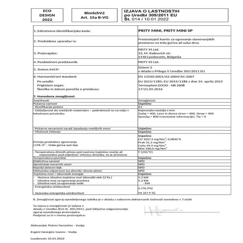 Dimenzije (Š/G/V): 39/47/62 cm, Moč: 5 kW, Teža: 48 kg, Dimni izhod: fi 130mm.