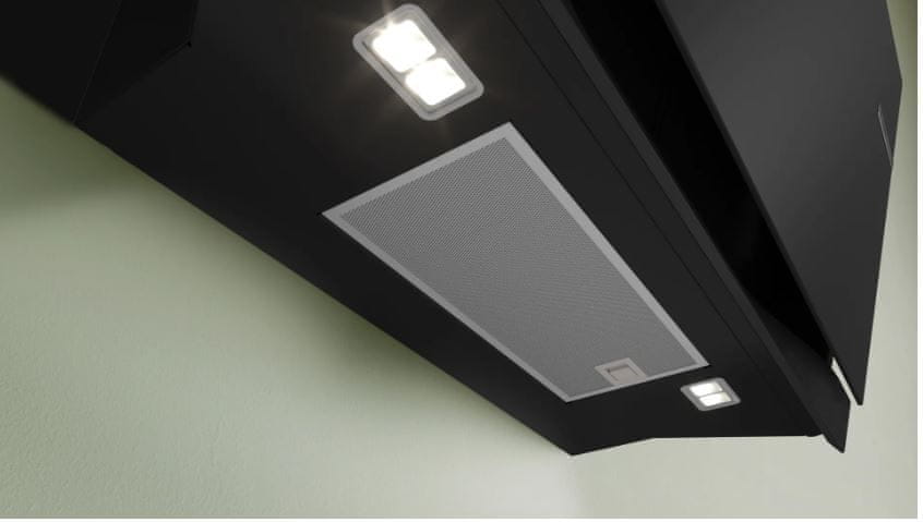 Opremljena je z LED osvetlitvijo, ki nudi popolno kombinacijo nizke porabe energije in dobre osvetlitve med kuhanjem. Poleg tega omogoča preklapljanje med toplo in hladno svetlobo. Ima tri kovinske maščobne filtre za filtriranje maščobe in drugih trdnih delcev iz odvajanega zraka. ki jih lahko čistite v pomivalnem stroju.