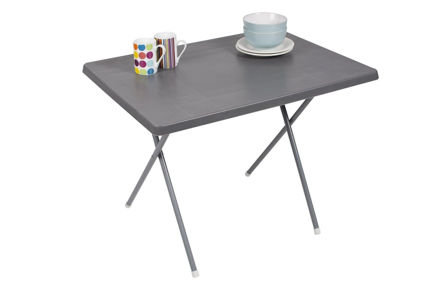 Zložljiva taborniška miza 80 × 60 × 70 cm z dvema zložljivima nogama z vzvodoma za zaklepanje na obeh straneh mize.
