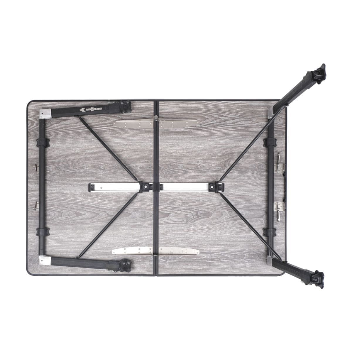 Stabilna in lahka miza za kampiranje s kakovostnim aluminijastim okvirjem. Ponaša se z nastavljivo višino, zaradi česar se miza prilagodi vsaki dejavnosti. Ima preprost sistem za hitro odpiranje oz. zlaganje. Zložena zavzema malo prostora in je enostavno prenosljiva.